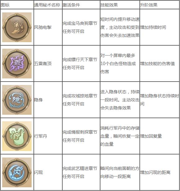 通用秘术开启条件和升阶效果