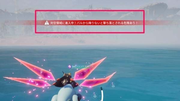 注意天坠之地的许多位置都有对空攻击,如果乘坐飞行帕鲁靠太近的话就会被攻击,建议先使用飞行帕鲁到附近,等出现对空警报后在换成水上帕鲁继续往前走。