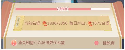 3、教育夙敌需要消耗名望,名望可通关剧情产出,通关剧情越多,名望越多,当天未消耗完的名望可以储存,最多可储存两天的名望,越靠后的夙敌产出的道具越好哦~
