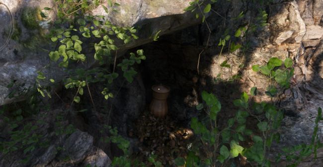在崖壁上靠近枯树的指定位置,使用工具挖掘即可发现安德鲁的战利品。
