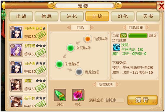 宠物的培养方式分为四种,分别是升级、进化,血脉,幻化和天书。我们可以在游戏界面点击左上角的宠物头像,来进行进化幻化等等的操作。