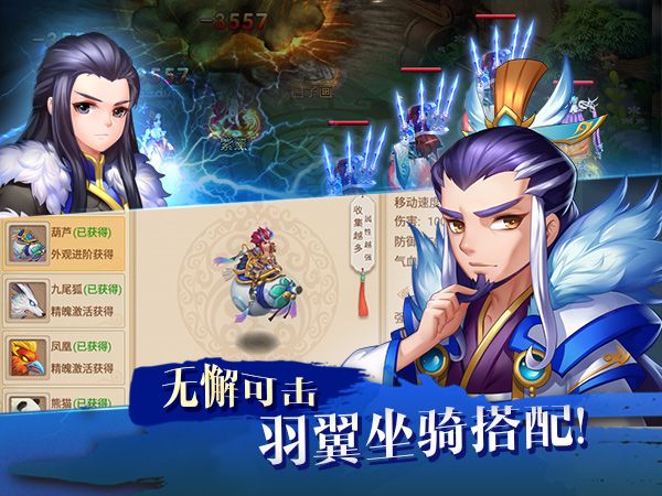 赠送的坐骑飞剑,可以通过葫芦进阶丹直接进化为葫芦坐骑。可爱的葫芦造型,瞬间让你的角色变得萌萌哒~而且增加了角色地图内的移动速度。这个可是会让你在NPC任务之间快速穿梭,大大提高游戏效率的。