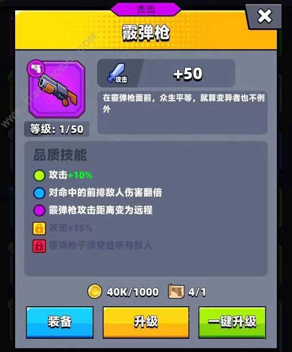霰弹枪:它是一把攻击力比较高的武器,无论是在游戏的前期还是后期,无论是升级前还是升级后都有着不俗的伤害。