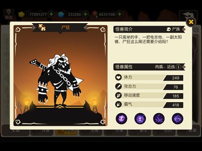 尸狂的基因突破方向很简单,但是想要洗练出合意的属性还是需要大量的金币的。尸狂的属性优先级为:体力>霸气>移速>攻击。