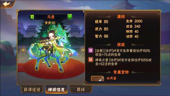 俗话说马氏五常,白眉最良,马良作为放开那三国2中为数不多的奶爸,马良的技能还是相当厉害的,除了常规的治疗友军的技能之外,马良的天赋还可以为自己及队友增加更多的释放怒气技能的机会。