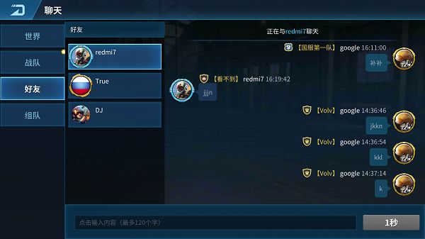 当有未读的好友信息时,好友分页按钮和对应好友头像上都会显示红点角标,提示玩家及时点击查看。好友频道发言次数不限,发言间隔时间5秒,单次发送文字的上限为120个字。