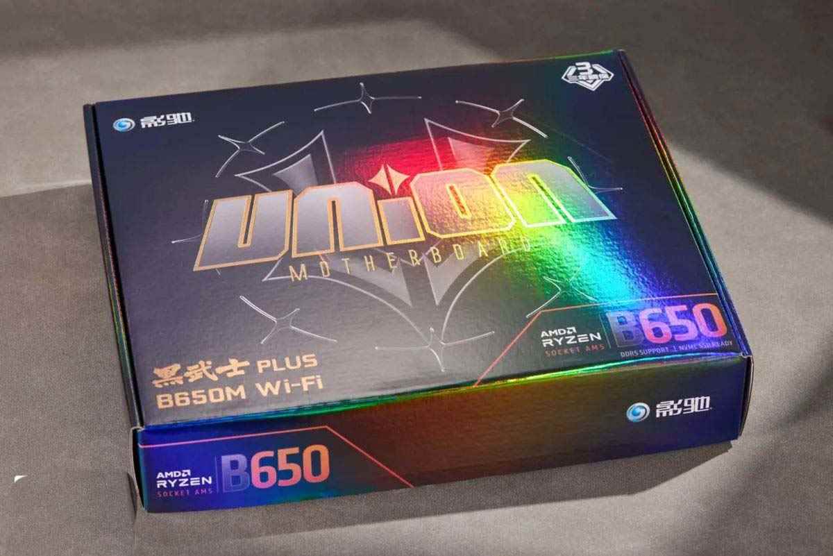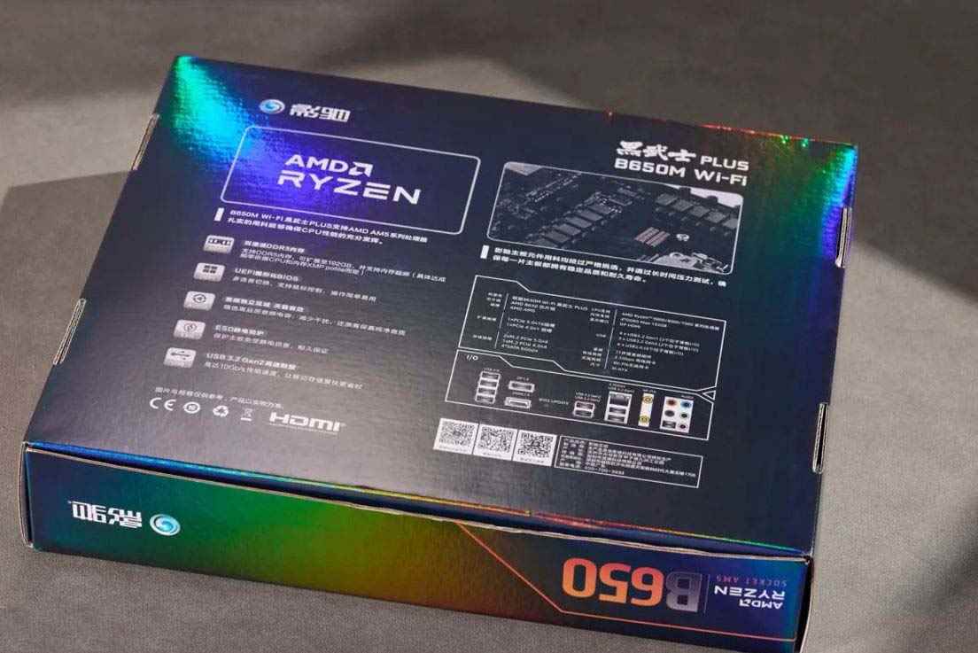 影驰联盟 B650M Wi-Fi 黑武士 PLUS 主板依旧采用彩盒包装设计,镭雕彩光配合纯黑配色比较时尚。