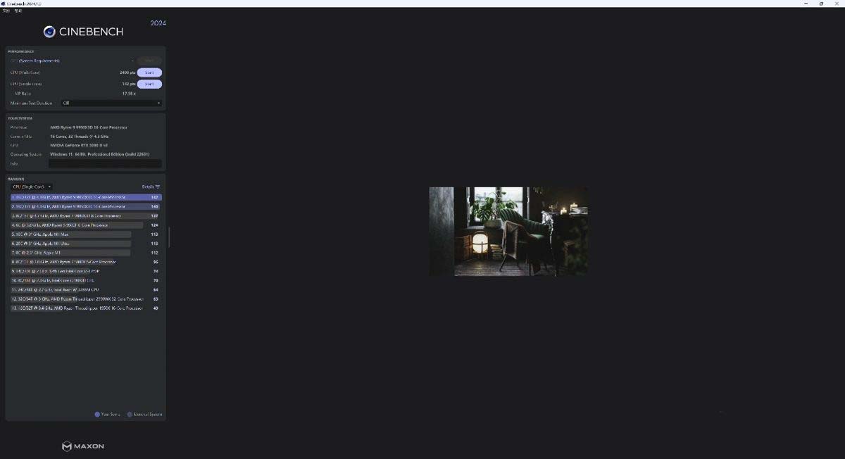 - 锐龙 9 9950X3D 处理器 PBO 模式下单核心得分 142 分,多核心得分 2490 分。