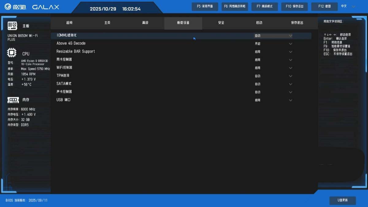 另外,从 BIOS 的设计上可以看出,影驰官方在 BIOS 上希望能够化繁为简,让更多小白用户快速上手,降低 DIY 用户的使用门槛,这也是影驰联盟 B650M Wi-Fi 黑武士 PLUS 主板的一大优势。
