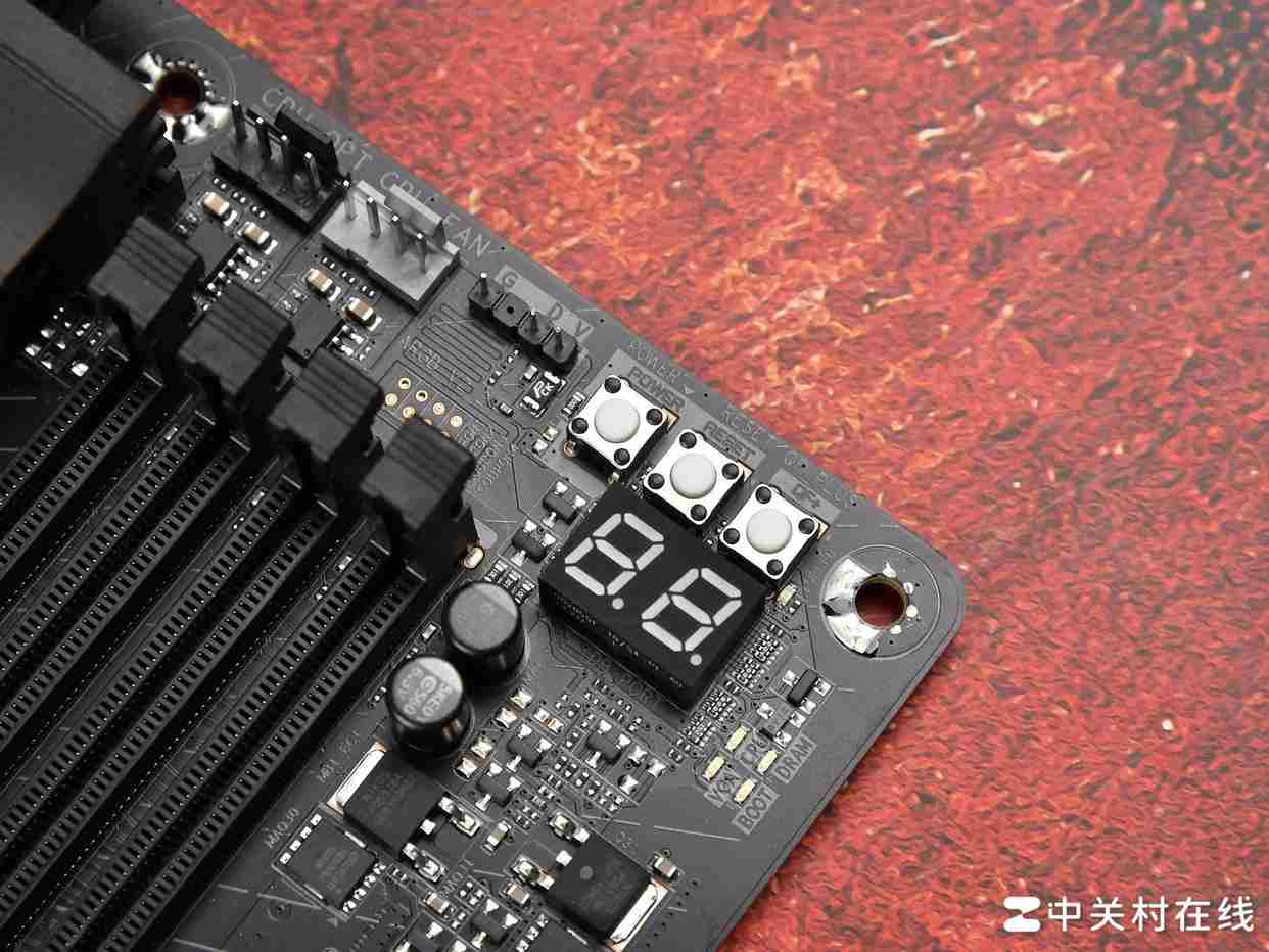 技嘉在主板顶部准备了DIY快捷按钮,并且提供一个Debug自检数显屏,帮助用户快速排查遇到的故障问题。
