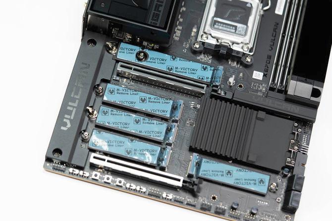 七彩虹X870E火神提供了5个M.2接口,其中3个PCIe 5.0x4满速接口,2个PCIe 4.0x4接口口,支持组建RAID 0、RAID 1、RAID 5和RAID 10磁盘阵列,并且还有板载的4个SATA 6Gbps接口,在硬盘拓展方面是完全足够的。