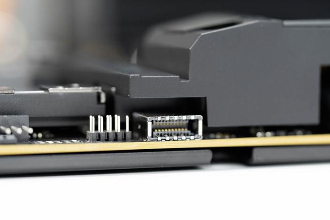 主板的VRM供电装甲上,这次采用了“智械视窗”的设计,机械元素配合上透明的视窗设计,还有贯穿式的灯光效果,点亮之后的视觉体验非常出色,电竞感十足。