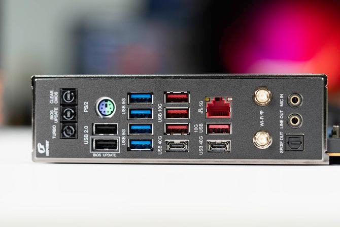 I/O接口部分的话,提供了4个USB 3.2Gen 2 10Gbps Type-A接口,4个5Gbps的USB 3.2 Gen1 A口,2个USB-C的40Gbps接口,支持DP视频输出,分辨率支持4K60FPS,还有PD15W供电,还有2个USB 2.0的A口,其中一个支持快速更新BIOS。