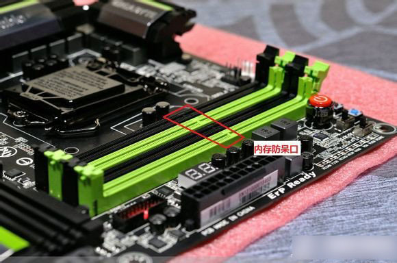 DDR SDRAM插槽,如图内存插槽中间有一个防呆口,这个防呆口具有保证内存安装方向正确和保证安装正确类型内存两个作用,所以在安装内存时绝对不可以使用蛮力。