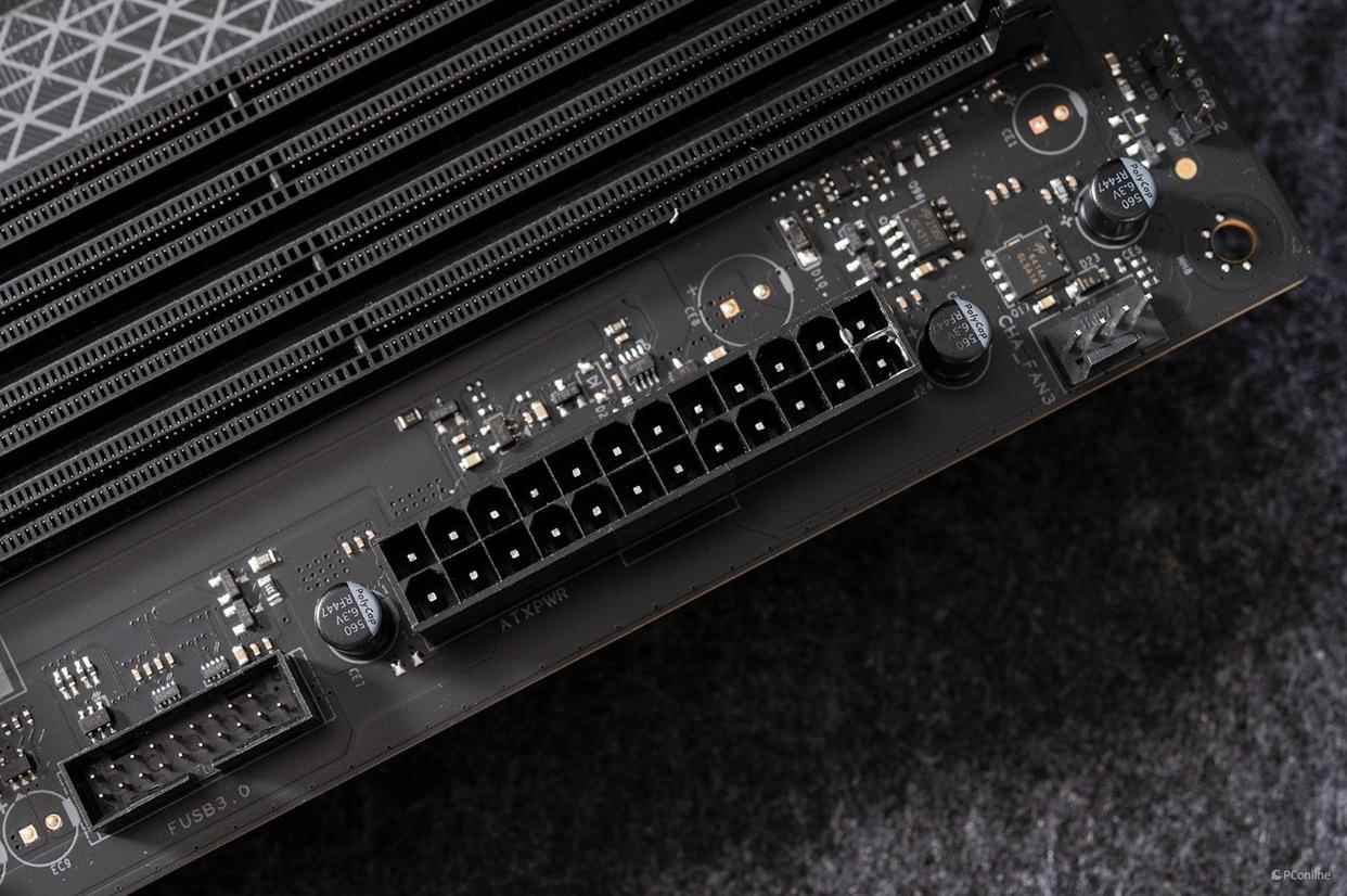 CPU的供电接口为双8Pin,主板的右侧依旧是24Pin供电接口,是硬件能够稳定运转的重要保障之一。