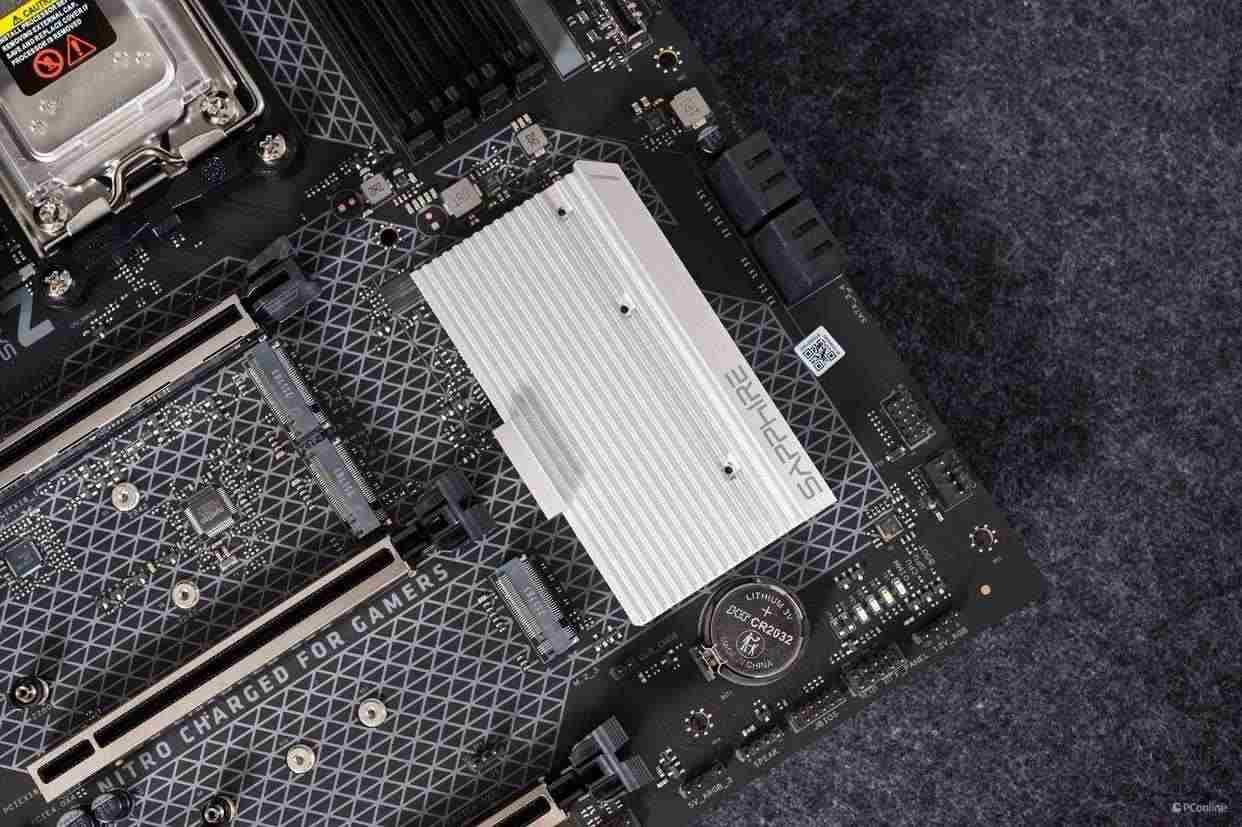 拆下散热装甲还能看到,为了应对固态硬盘的发热量,蓝宝石还准备了高品质导热垫。