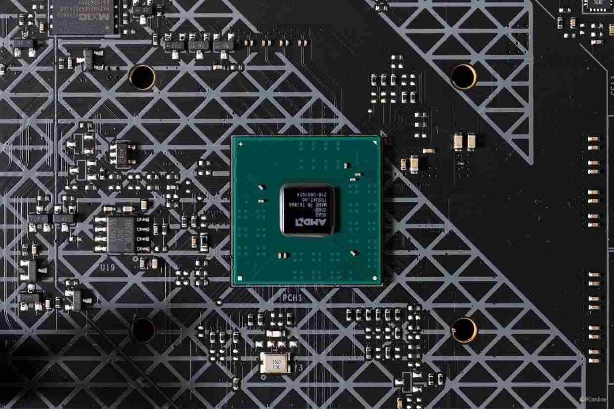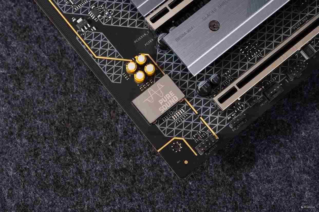 卸下以后就能看到B850芯片。其主要负责I/O接口等一些外设接口的控制及提供部分PCIe通道。