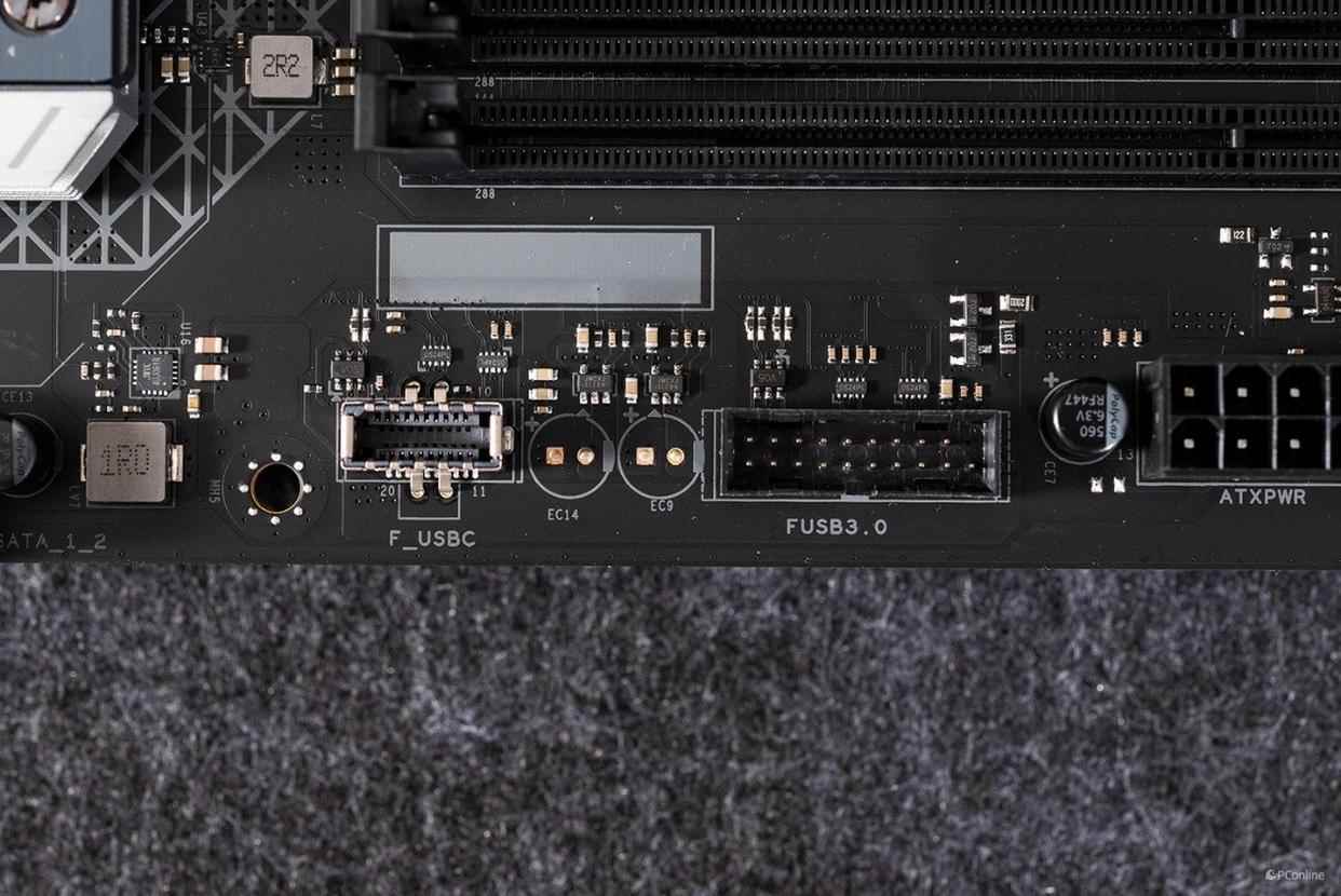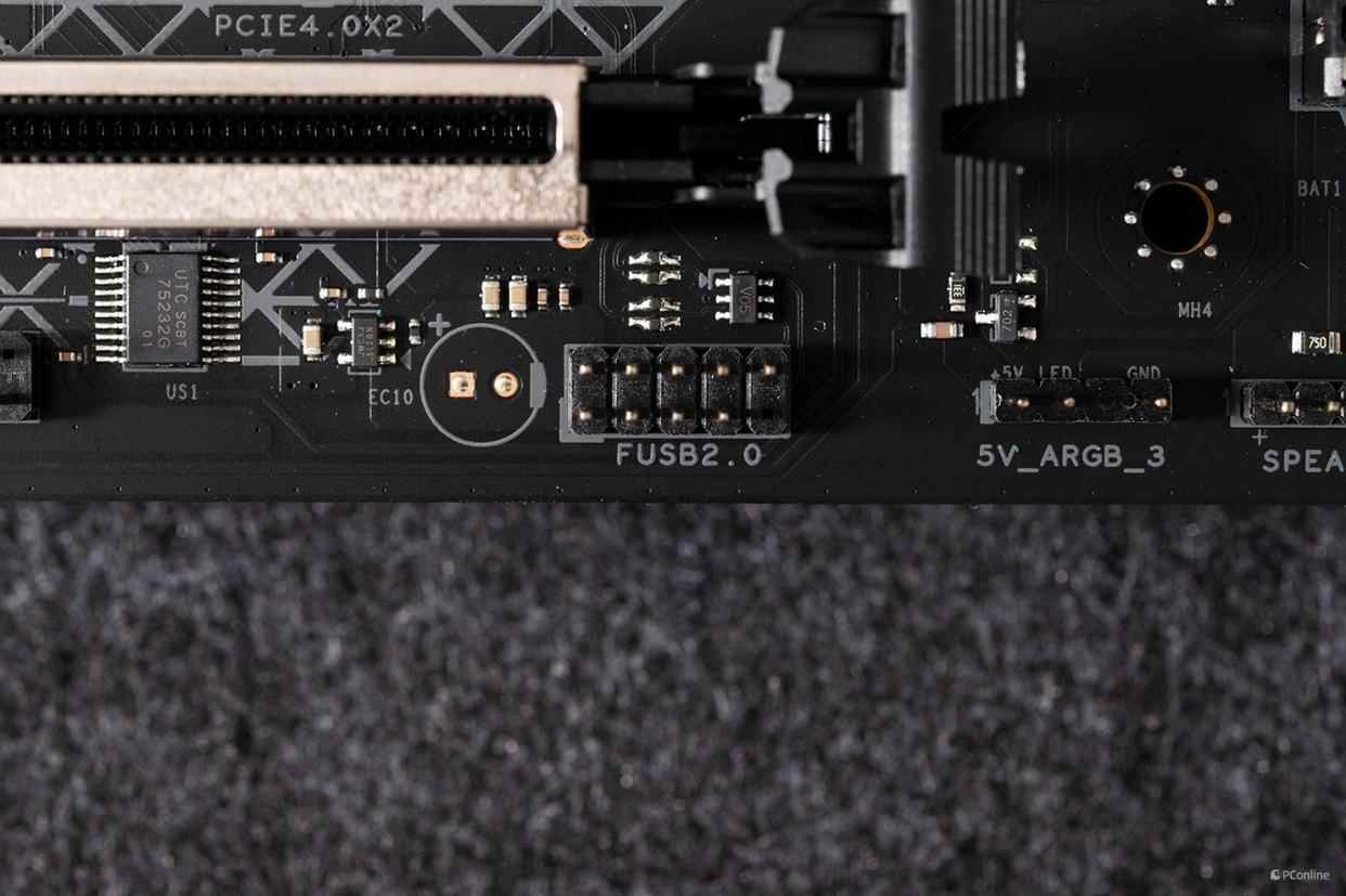 旁边还有USB前置拓展接针,可以扩展出2个USB 3.2 Gen 1 5Gbps(Type-A)接口以及1个前置USB 3.2 Gen 1 5Gbps (Type-C)接口,这个配置基本能够满足玩家的扩展需求。