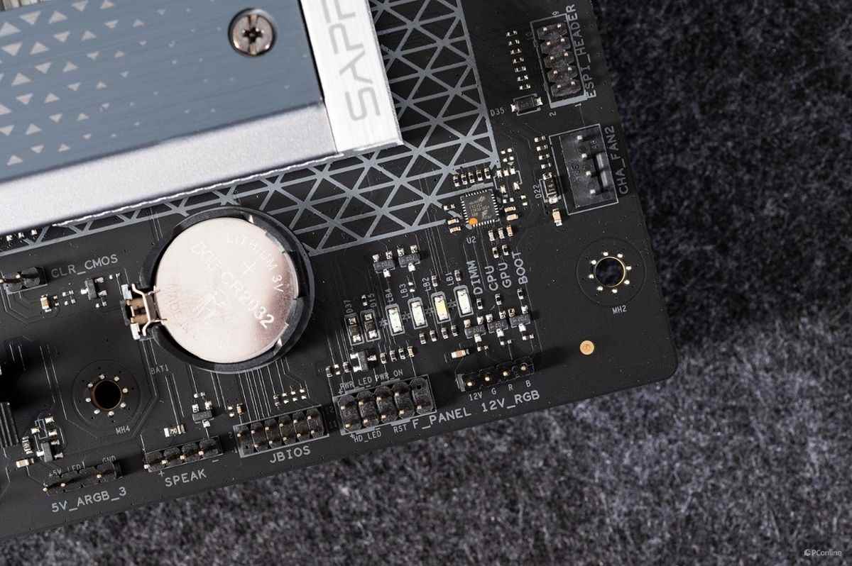 卸下外部厚重的散热装甲以后,内部的供电模组一览无余。蓝宝石 NITRO 氮动 B850A WIFI主板采用了12+2+1相数字供电。其中CPU核心供电为12相、核显供电为2相,还有1相则是AUX供电。