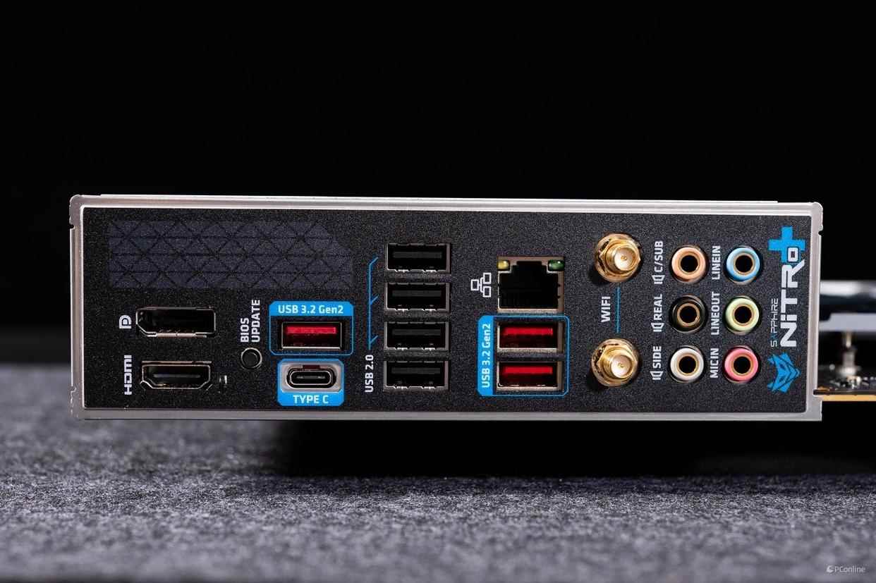 后置IO接口部分也可以说是应有尽有,从上到下依次是1个DP,1个HDMI,4个USB 2.0接口,3个USB 3.2 Gen 2接口、1个USB 3.2 Type-C Gen 2接口;此外还包括1个2.5G有线网口、Wi-Fi 6天线接口以及声道音频接口。这款主板后置还有一个UPDATE BIOS按钮,以及前置提供Clear BIOS按钮和DEBUG指示灯,实用性拉满。
