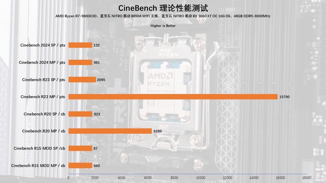 有一说一这个成绩还是非常惊喜的,蓝宝石NITRO 氮动 B850A WIFI主板上的12+2+1供电模组确实能够很好的喂饱9800X3D处理器,并且以目前的状态来看,就算更强势的R9级别处理器来了也是轻轻松松。