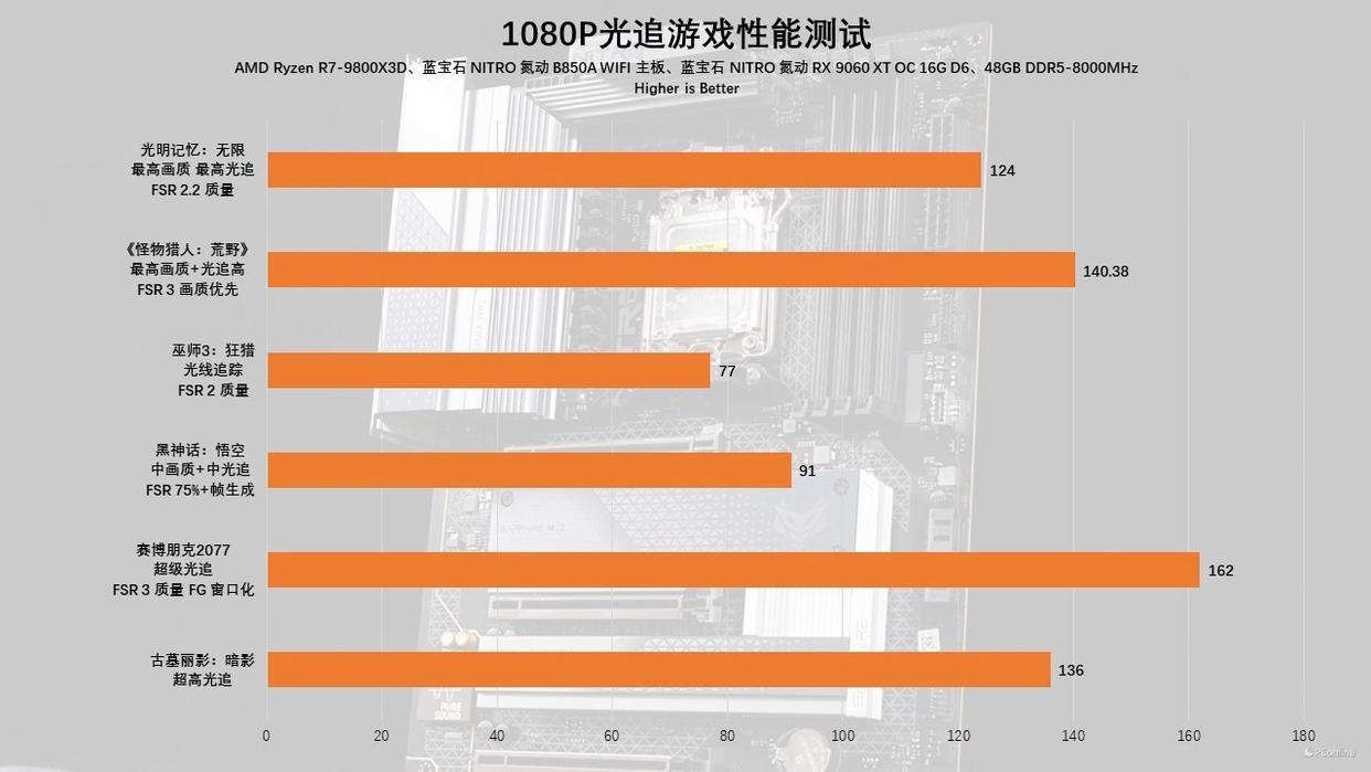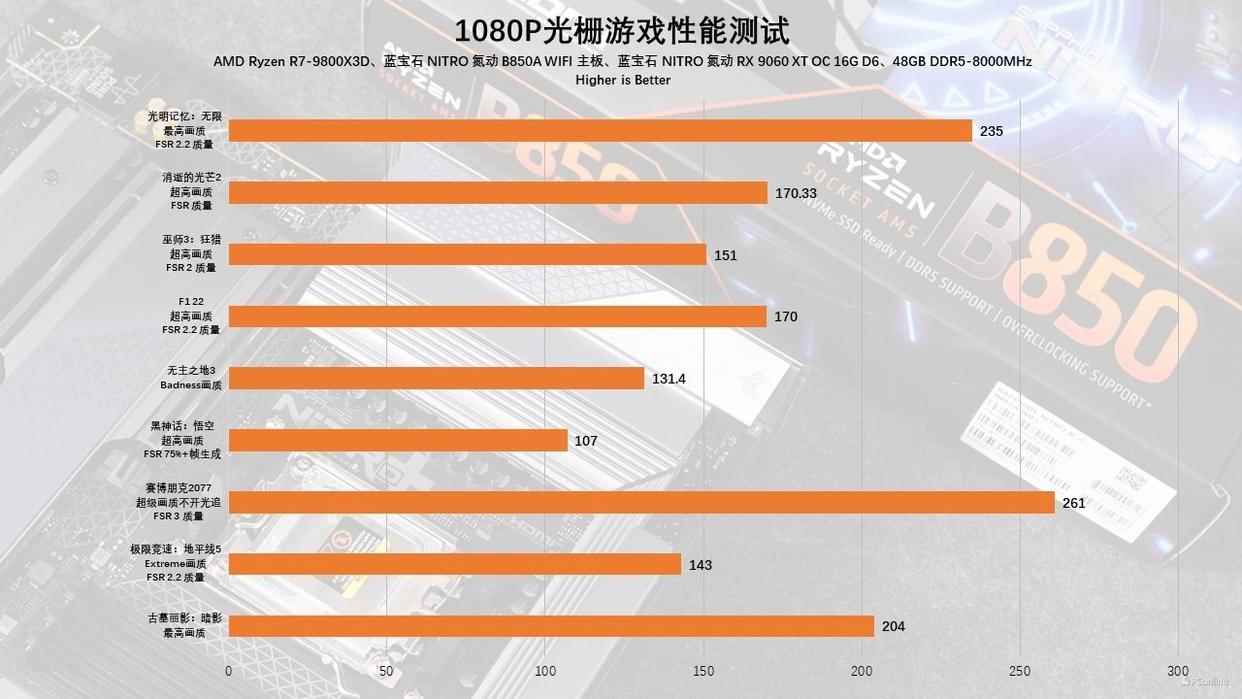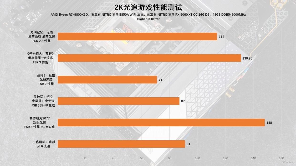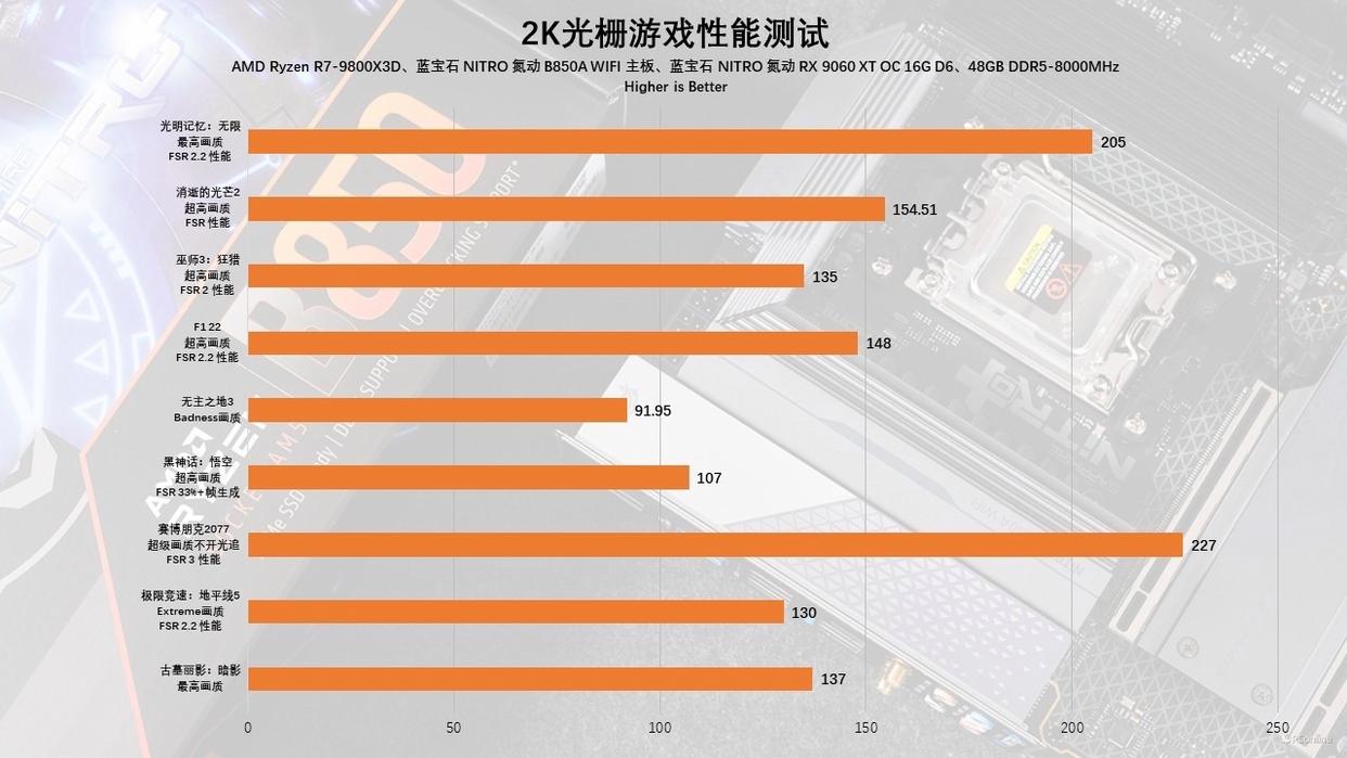 总而言之,游戏玩家选蓝宝石NITRO氮动B850A WIFI主板就对了,9800X3D搭配蓝宝石 NITRO氮动RX 9060 XT OC 16G D6显卡使用,面对各类热门3A大作皆能应对自如,即便是在2K分辨率下,开启光追特效后也可畅快游玩。