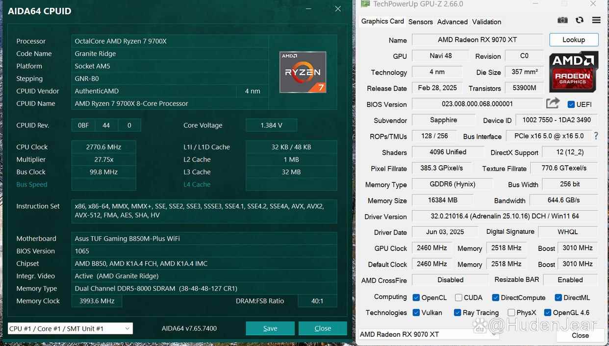 测试用的显卡是蓝宝石的极地9700XT,这张显卡还挺配AYW系列的主板的,感觉色号都是一样的。9700XT的性能现在也逐渐持平5070Ti了,显存也对位,AMD是真的出息了,同样的核心面积性能终于能差不离了