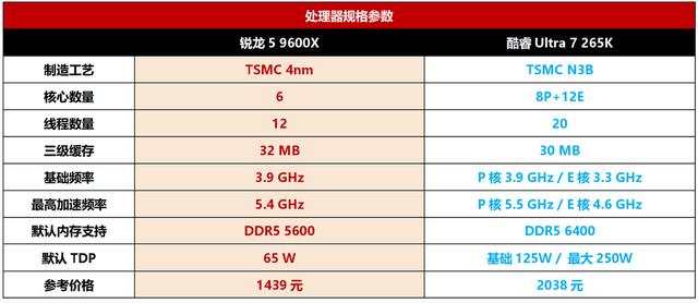 最近内存和SSD价格涨幅夸张,这让不少游戏玩家在装机的时候更加关注性价比了。特别是对于网游玩家来讲,每一分预算都要实实在在体现在帧率上才是最好。而锐龙9000平台不但拥有黄金比例的全大核架构,整体性价比也相当出色,是很多游戏玩家的首选。当然,也有部分玩家关注酷睿Ultra 200系列,认为其核心更多会比较占优。那么,我们就选择关注度较高的锐龙5 9600X和酷睿Ultra 7 265K进行对比,看看谁更适合网游装机。
