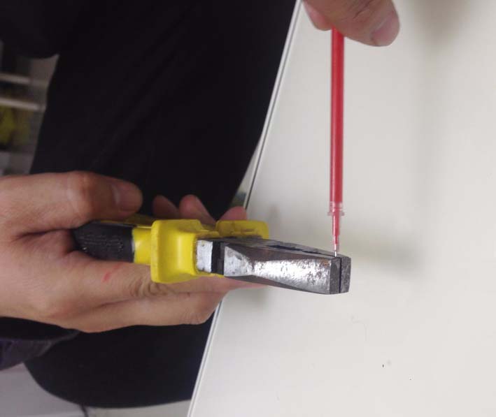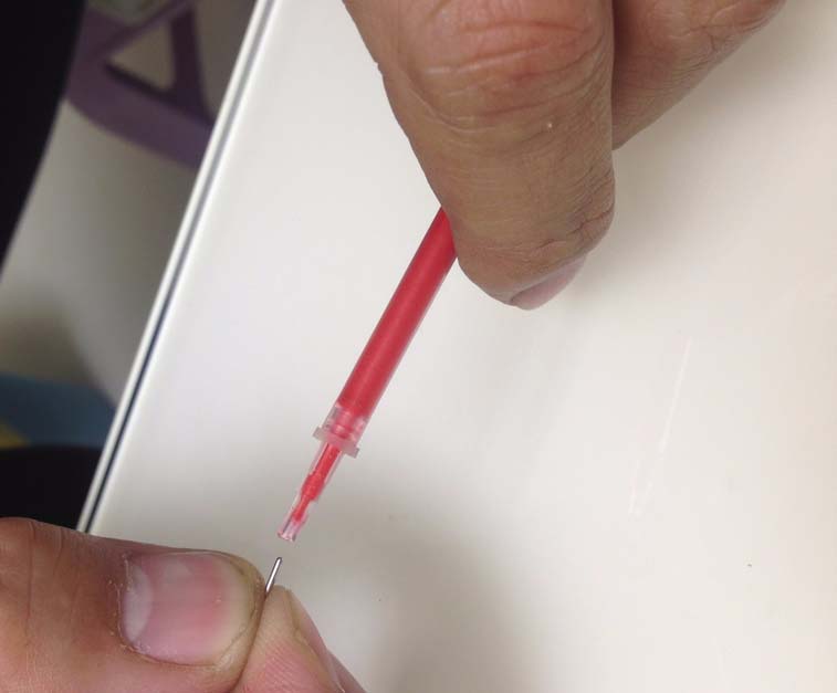 1、拿出最神奇的工具,就是水笔笔芯,要头部细的那种,如图: