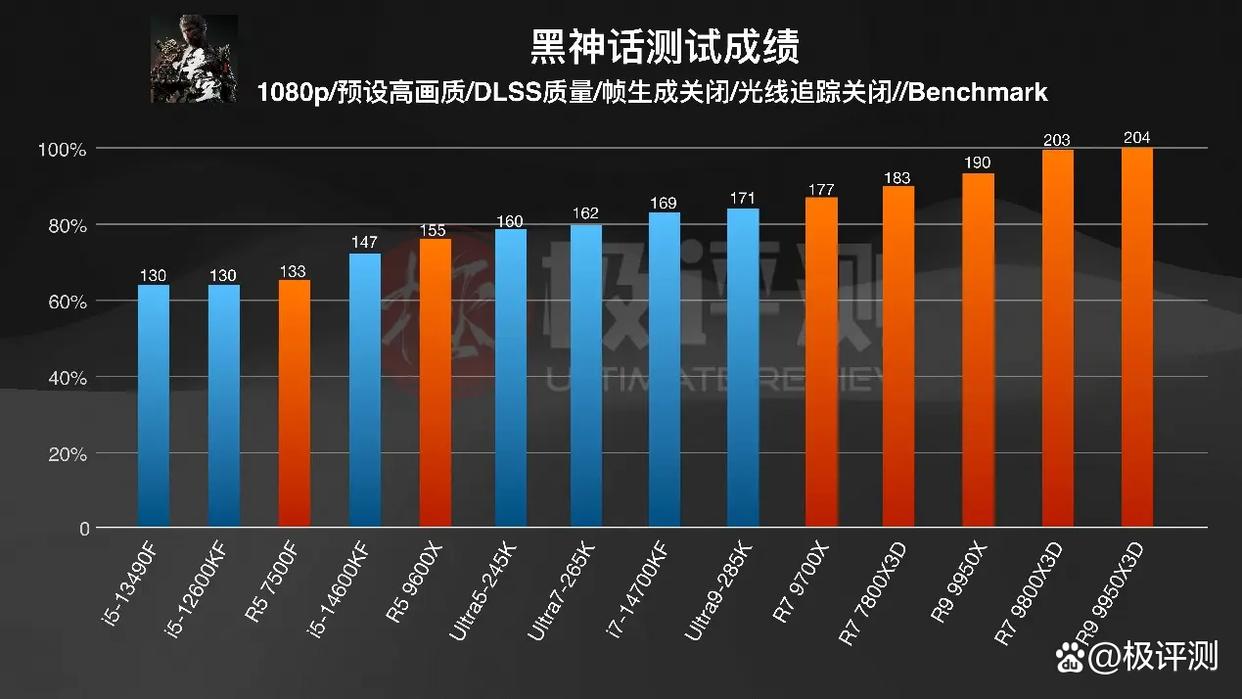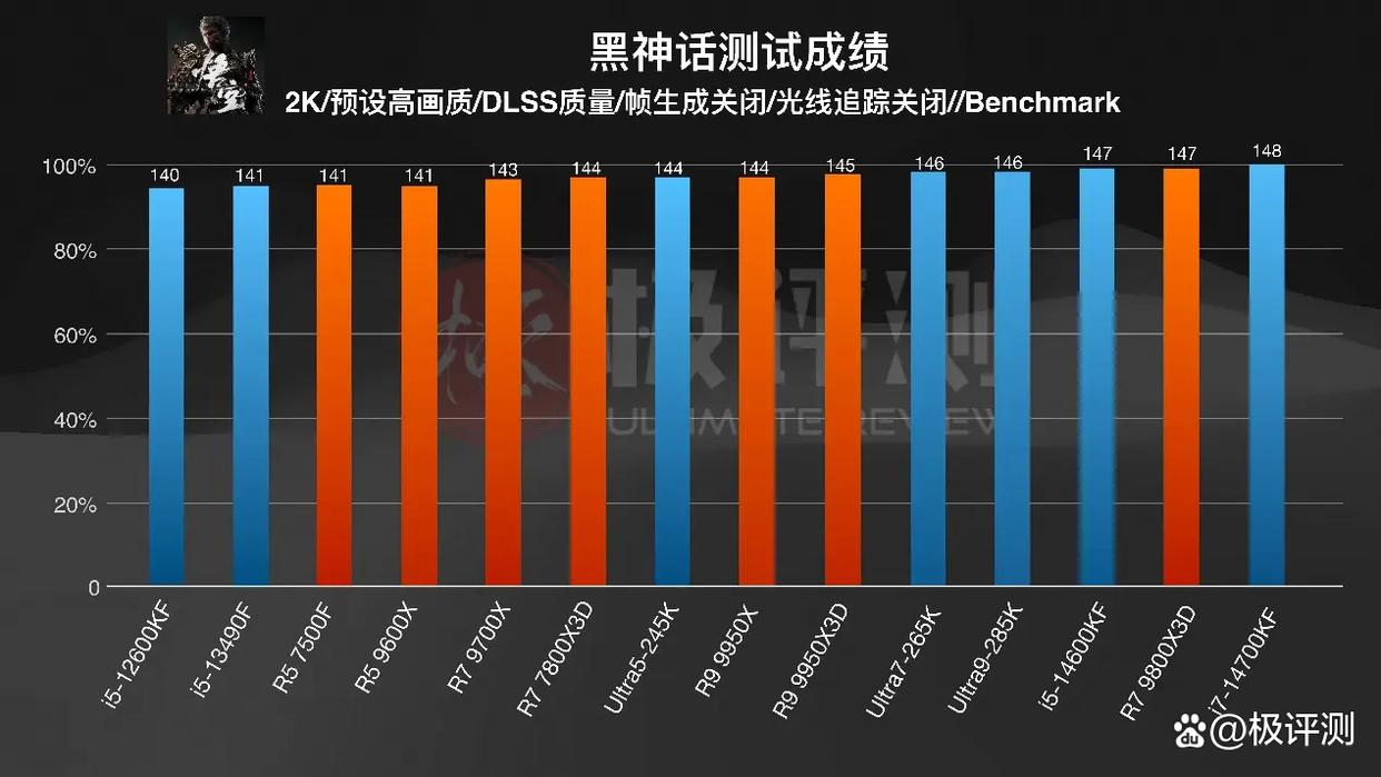 首先是《黑神话悟空》,超采样清晰度为质量,预设高画质,关闭光追和帧生成。AMD的CPU依旧是有着小幅领先,但不像网游这么夸张有着以下克上的跨级表现,大部分都可以说等级森明,也算能对应实际价格,一分价钱一分货。