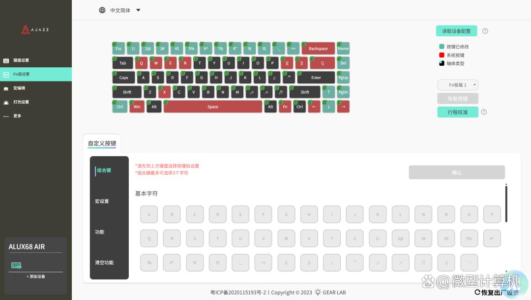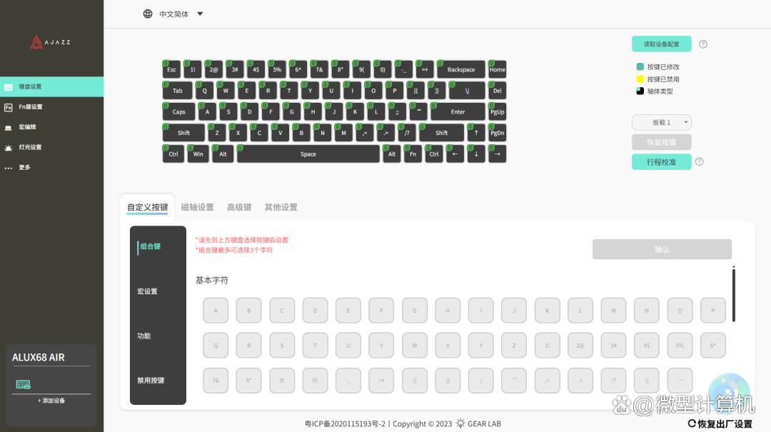 ▲驱动可以帮助黑爵ALUX68 AIR三模机械键盘调整按键功能