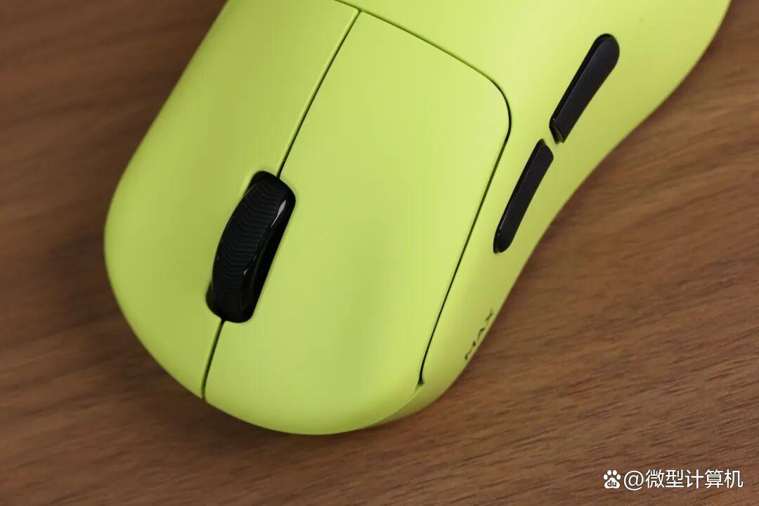 按键设计同样有亮点——左右键增设手指槽,中部采用下凹造型,无论是手指放置还是点按操作,都能快速找准适配位置,相较于前代平滑按键的使用体验更胜一筹。作为专为小手用户打造的产品,其按键布局经过合理精简,取消中间CPI切换键,保留左右键、滚轮及两枚左侧常用键,与紧凑机身相得益彰,操作逻辑清晰直观。