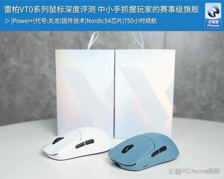 而这次走进PChome评测室的,正是雷柏VT0系列无线电竞鼠标,最强性能、续航的类XM模具。本次收到两款鼠标,分别是VT0标准版皎月白以及VT0 MAX版凝霜蓝配色。从产品定位来看,这系列鼠标并非简单的万金油中小手模具,而是集中于抓握玩家习惯做了深度优化,那么雷柏VT0系列究竟能否顺利突破中小手玩家在选购中小手鼠标时的重重困难?我们通过实际体验与细节拆解,一同解析。