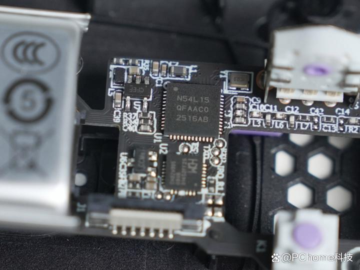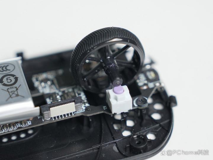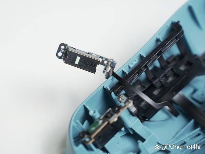 而接下来我们拆开鼠标,深度解析一下这款鼠标内部所搭载的硬件配置。首先映入眼帘的就是其PCB集成面板。雷柏所搭载的极客之芯2.0是一套完整的自研模块化硬件体系,不仅仅是简单的PCB板,而是雷柏VT0二代系列电竞鼠标的性能基石,更是VT二代全系列电竞鼠标的统一硬件底座。倾听玩家声音而做出的优化,致力于为中小手电竞玩家打造出轻量化与高性能兼得的解决方案。