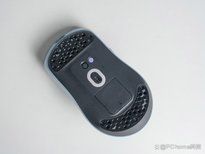 在轻量化设计上,雷柏VT0系列一如既往地在内部、底座结构做了大量镂空,当撕下底部的脚贴后,便能清晰看到鼠标底盘布满了镂空孔洞。在最大限度减轻重量的同时,雷柏精密的算法与可靠的做工依旧保障了鼠标底盘的结构强度与稳定性。