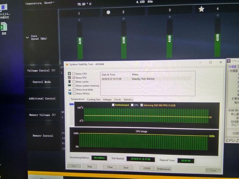 39分钟时CPU温度78.25度。