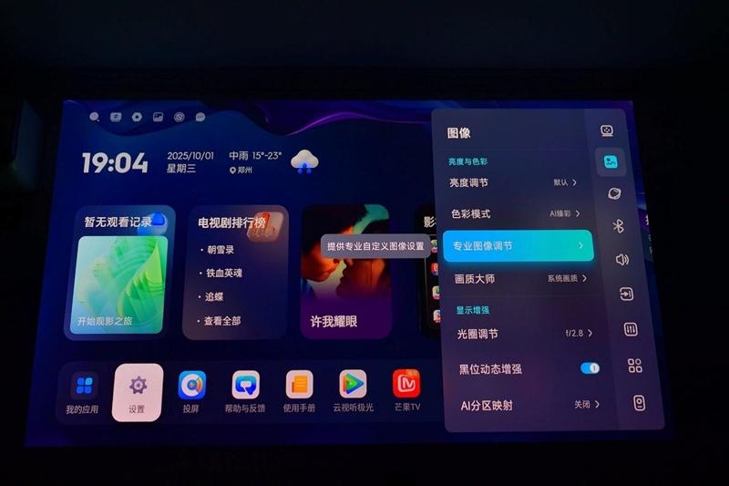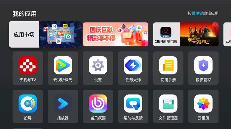 得益于当贝S7 Ultra Pro投影仪内置4GB+128GB的巨大容量,在原有的当贝超级AI OS 6.0的基础上,我们还可以很方便的安装额外的APP,这里我们就先安装了央视频TV、云视听极光和MoonLight串流工具。
