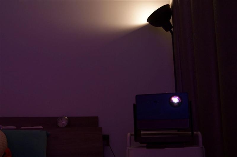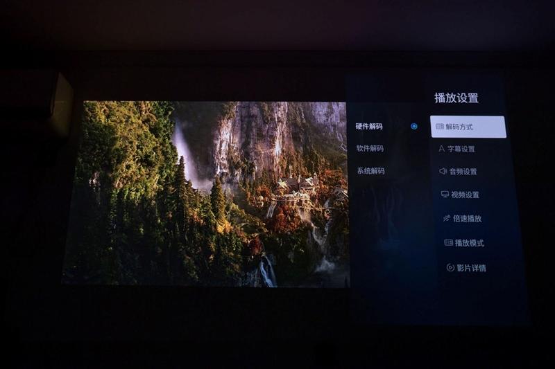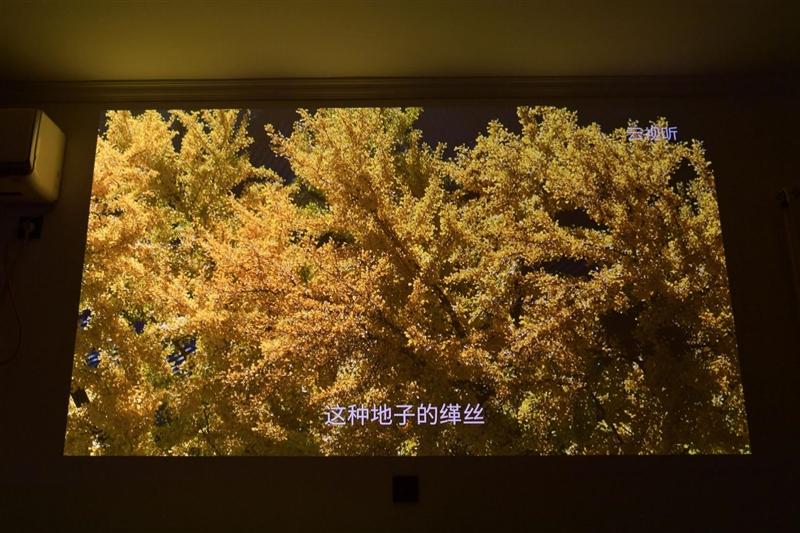 虽然大家都知道,投影机画质要达到最佳效果,遮光必须要做好,但实际上在使用时,大家都当它是个电视,白天晚上打开就看。所以我们也测试了一下在打开室内的漫射灯时,当贝S7 Ultra Pro投影仪的画面效果。