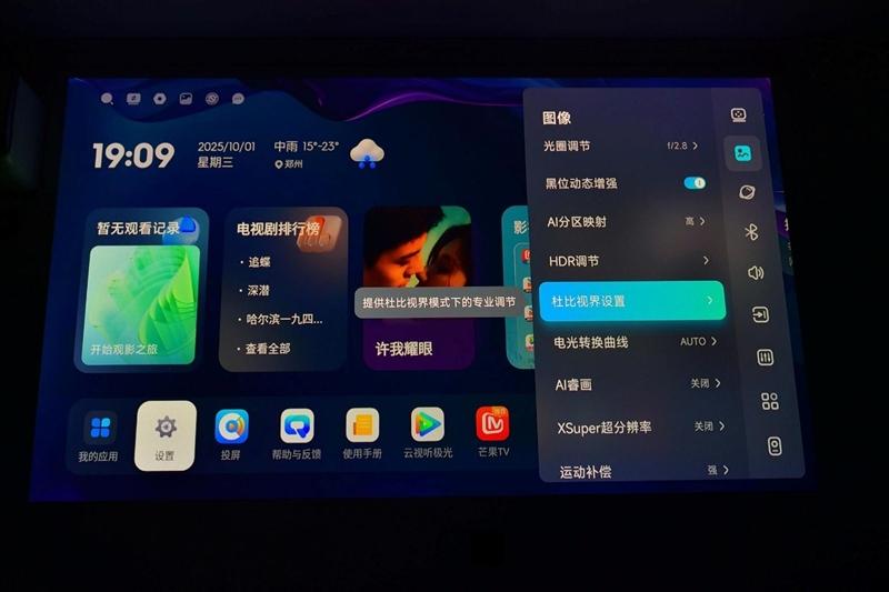 菜单中的杜比视界额外设置,在主页时并不能真正进入设置页面,只有在播放杜比视界视频时,就可以看到这个菜单中提供了三种不同的杜比视界色彩模式,分别是明亮、柔和和艳丽,用户可以根据自己的喜好和视频的内容选择最喜欢的色彩模式。