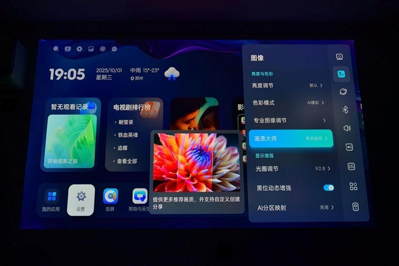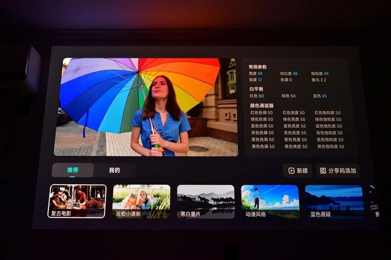 当贝S7 Ultra Pro投影仪还提供了画质大师功能,普通用户也可以通过分享码来同步专业用户的色彩调整方案,十分方便。
