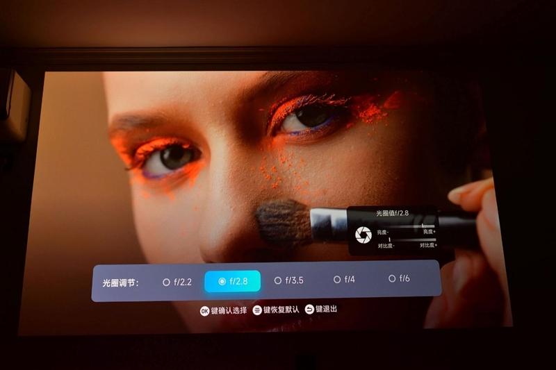 而且在开始使用之前,我看到当贝S7 Ultra Pro投影仪的最大亮度比之前当贝S7 Ultra MAX略微下降,还会担心会不会有明显差距,但实际上使用时,我使用F2.8的光圈,已经从最大的F2.2光圈收缩了一档,依旧会觉得HDR画面有些刺眼,特别是在游戏中,亮度太高,收缩到F3.5或F4.0会好很多。