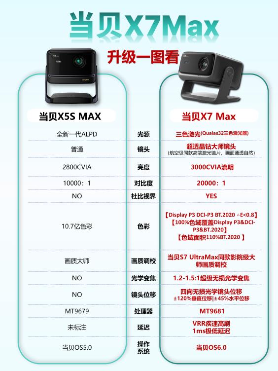 上半年发布的当贝X5S Max因高对比度与舒适度广受好评,而当贝在10月秋季新品发布会上又推出了全新的X7系列投影仪,其中当贝X7 Max作为该系列最具性价比的产品,与5月发布的当贝X5S Max形成了鲜明的代际对比。今年双十一,不少影音爱好者和准备入手家用投影仪的消费者提出,这款新型号到底在哪些方面进行了升级?是否值得多花预算?今天就带大家全面解析当贝X7 Max和X5S Max的差异。