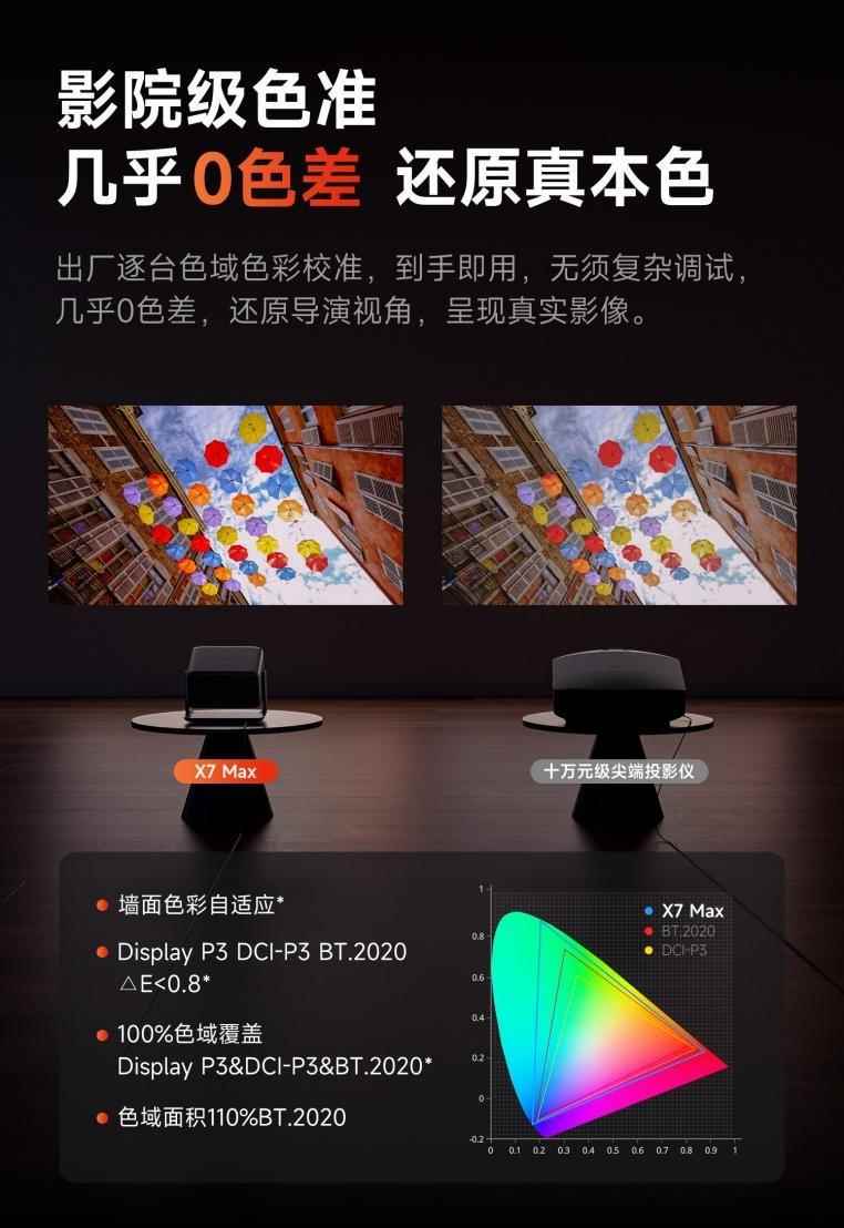 在对比度这一块,当贝X5S Max和当贝X7Max都使用了当贝自研的DynamicX深黑算法,当贝X5SMax对比度达到了10000:1,而当贝X7Max进一步将对比度提升至20000:1,暗部细节层次感更强,黑位更深邃,彻底告别普通投影仪“发灰”的现象。