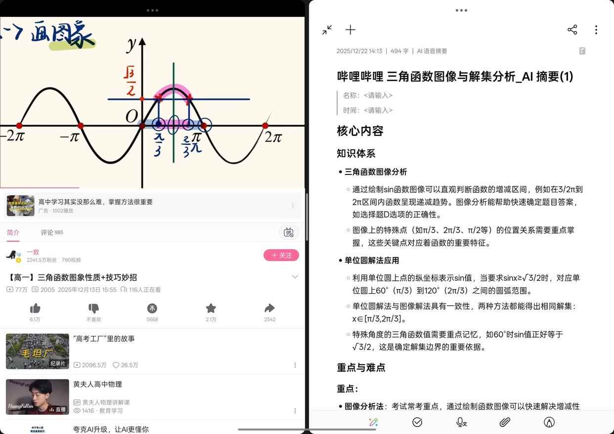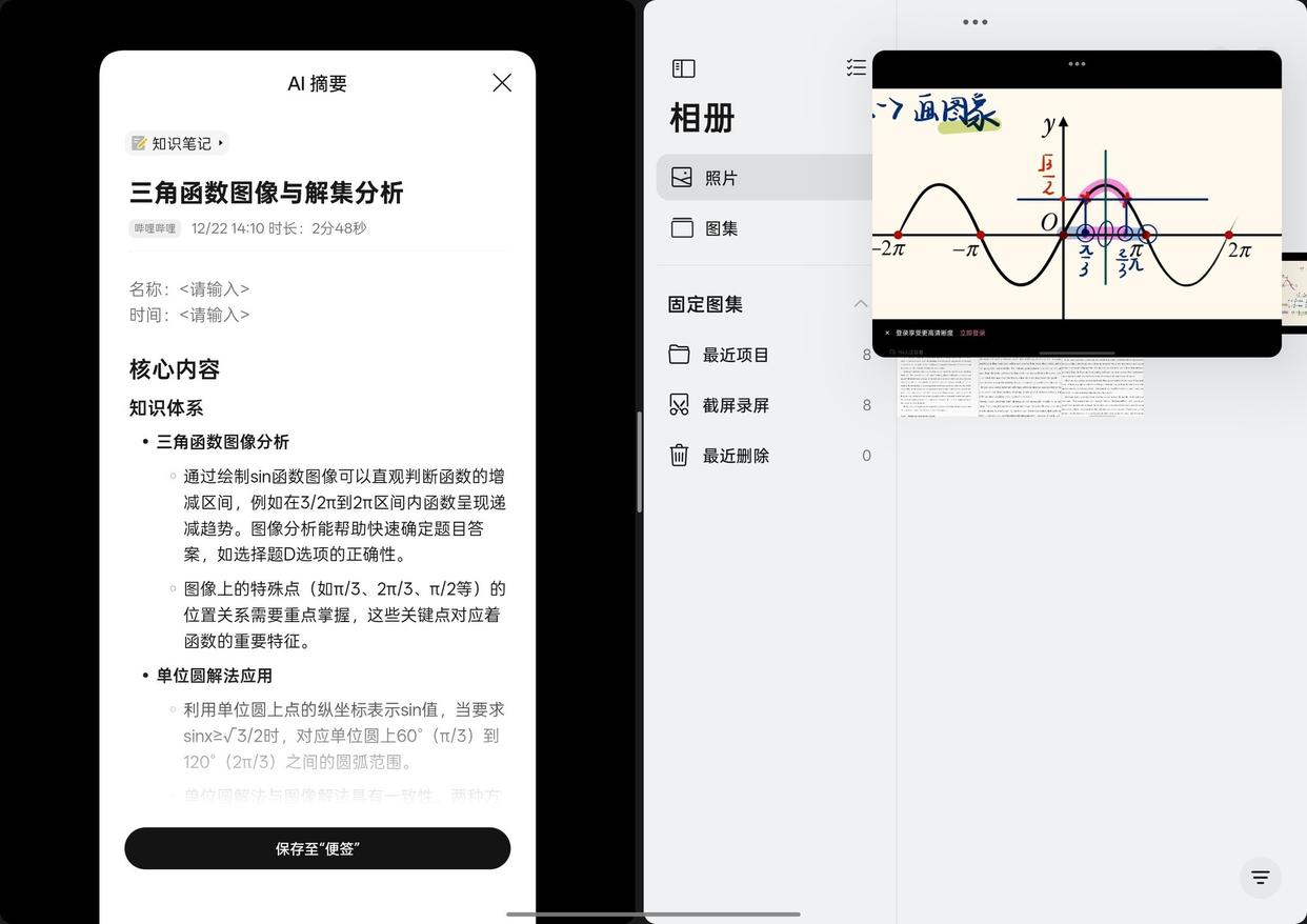 网课场景里,一侧放视频,另一侧打开笔记,遇到重点直接提取插入,再补两行解释,流程非常连贯。文献阅读场景里,一侧开PDF,另一侧做提纲或思维导图,边读边整理,不需要频繁切换。写作业和做题时,一侧放题目和讲义,另一侧写解题步骤或整理错题,同时用浮窗查资料或对照表格,学习节奏更稳定。