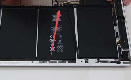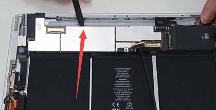 11、然后用撬棒断开电池排线接口,注意不要撬坏了旧电池,小心取下电池