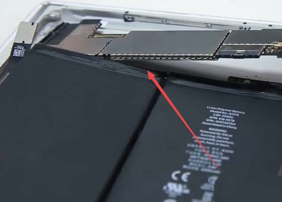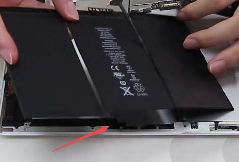 12、接下来我们就是安装电池了,先买回一个ios全新的电池放进ipad里面,然后扣上电池排线接口和主板