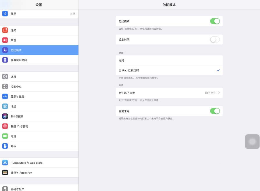 iPad Pro平板勿扰模式怎么允许重复来电?