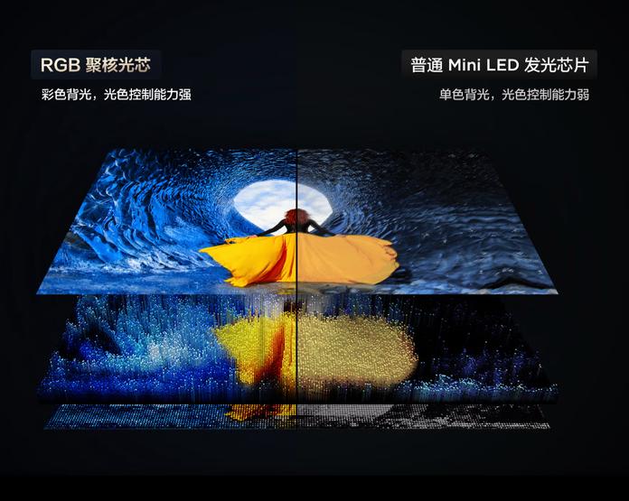 但就像 OLED 时代、Mini LED 时代里各品牌都有自己的技术差异一样,即使在 RGB-Mini LED 这个大的技术方向下,不同品牌也有各自的技术路线,彼此之间也有不小的差异。