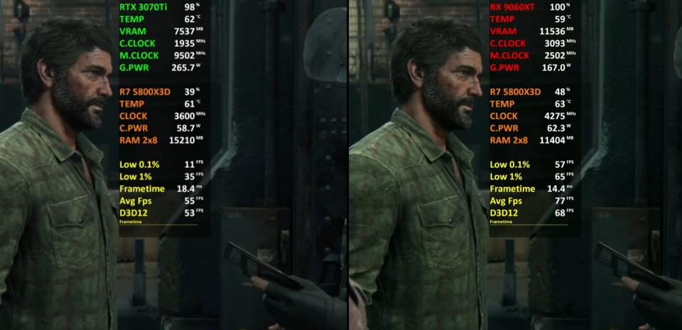 RX9060XT 16GB和RTX3070Ti显卡谁更值得入手? 七款游戏性能对比测评