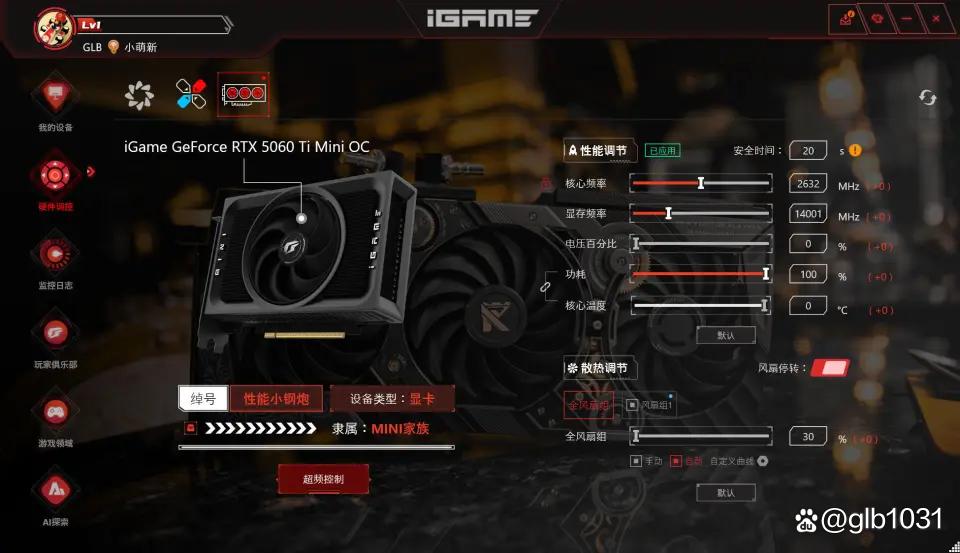 单风扇的ITX显卡往往因为紧凑的设计而忽略RGB灯光的部分,iGame RTX 5060 Ti Mini OC 显卡则在侧面新增「MINI」字样ARGB灯效,支持通过「自在星球」软件自定义光效,个性十足。
